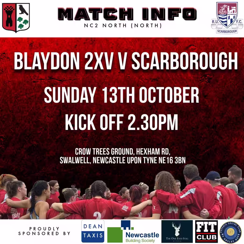 Blaydon 2XV vs Scarborough this Sunday, 13th October at the Crow Trees Ground!